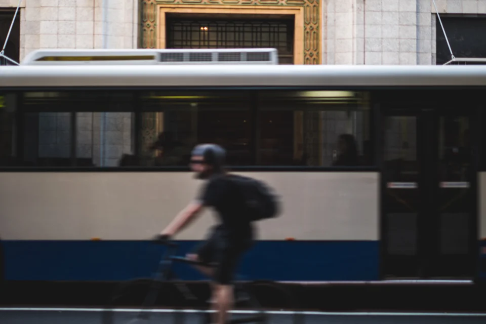Pedestrian & Road traffic. Since I was across the street, I had to deal with pedestrians walking through the frame on both sides of the street. Every few seconds I'd also have cars, bicycles & buses pass through my frame. When the buses zoomed pass, they would completely engulf the shot (see above).